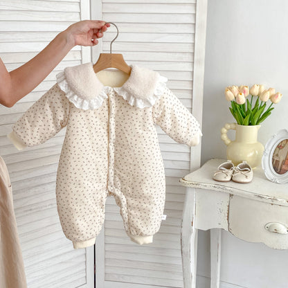 Peleles de forro polar acogedores de manga larga con estampado floral para niñas recién nacidas en otoño e invierno.
