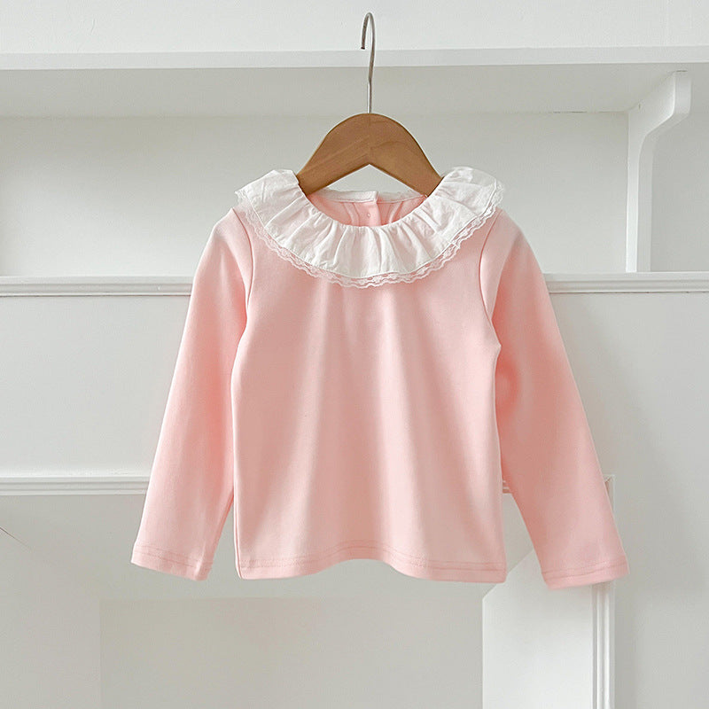 Camiseta básica de manga larga con cuello para bebés y niñas, suave, cómoda y sencilla, para otoño