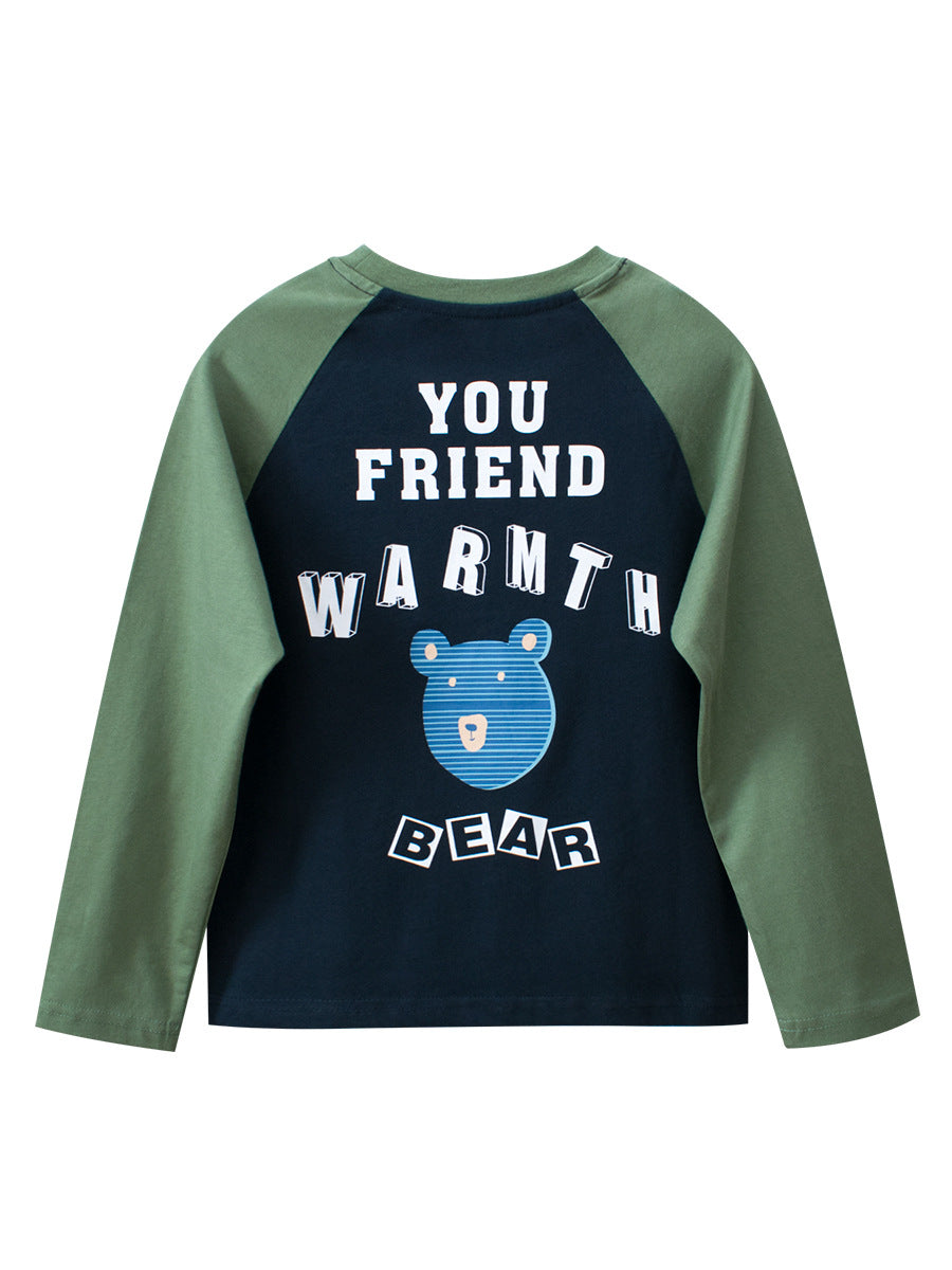 Camisa de manga larga con cuello redondo y estampado de dibujos animados para niños, llegada de otoño