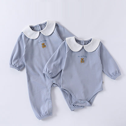 Mono y body unisex de manga larga con estampado de osito bordado para bebé, recién llegado en primavera