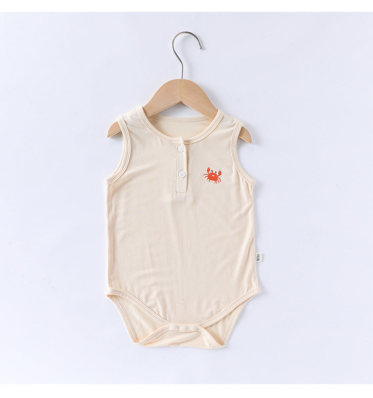 Este body unisex sin mangas para bebé presenta un encantador logo de dibujos animados y un cómodo cuello redondo, perfecto para los cálidos días de verano. Diseñado para mantener a tu pequeño fresco y con estilo, combina practicidad con un toque divertido, lo que lo convierte en la opción ideal para el día a día.