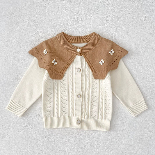Autumn Arrival Baby Girls Comfortable Butterfly-bow Decorated Knitted Long Sleeves Cardigan