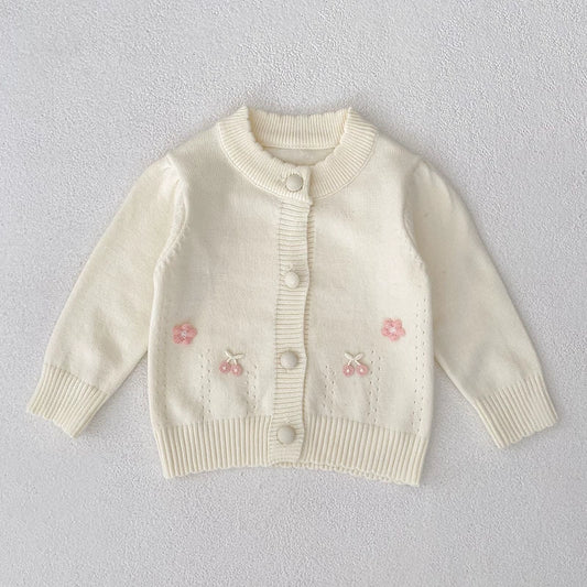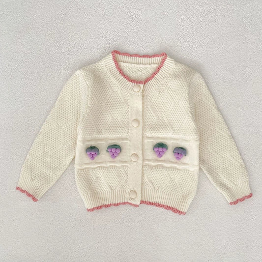 Autumn Arrival Baby Girls Comfortable Flowers and Fruits Decorated Knitted Long Sleeves Cardigan
