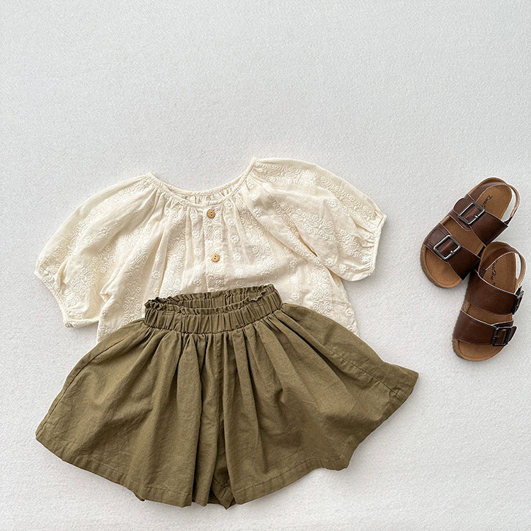 Esta elegante falda plisada para niña combina detalles de volantes atemporales con una paleta de colores sólidos, ofreciendo un look refinado y a la vez divertido, perfecto para el verano. Diseñada para la comodidad y el estilo, complementa a la perfección cualquier vestuario informal, permitiendo libertad de movimiento. Ideal para el día a día, esta falda aporta un toque de sofisticación a la colección de verano de tu hija.
