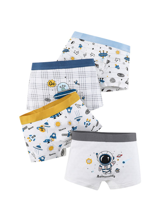 Conjunto de ropa interior transpirable tipo bóxer con estampado de dibujos animados de astronautas sencillos para niños