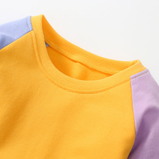 Vestido de primavera con diseño de patchwork de dibujos animados y manga larga para niñas y bebés
