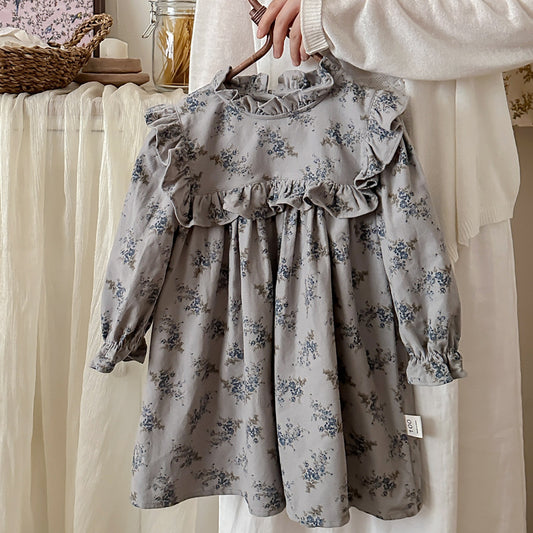 Vestido vintage de otoño con cuello con volantes y mangas largas con estampado floral para niñas