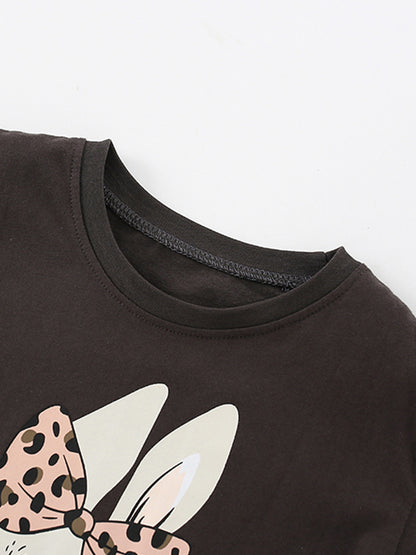 Camisas casuales de cuello redondo con estampado de dibujos animados de otoño para niña