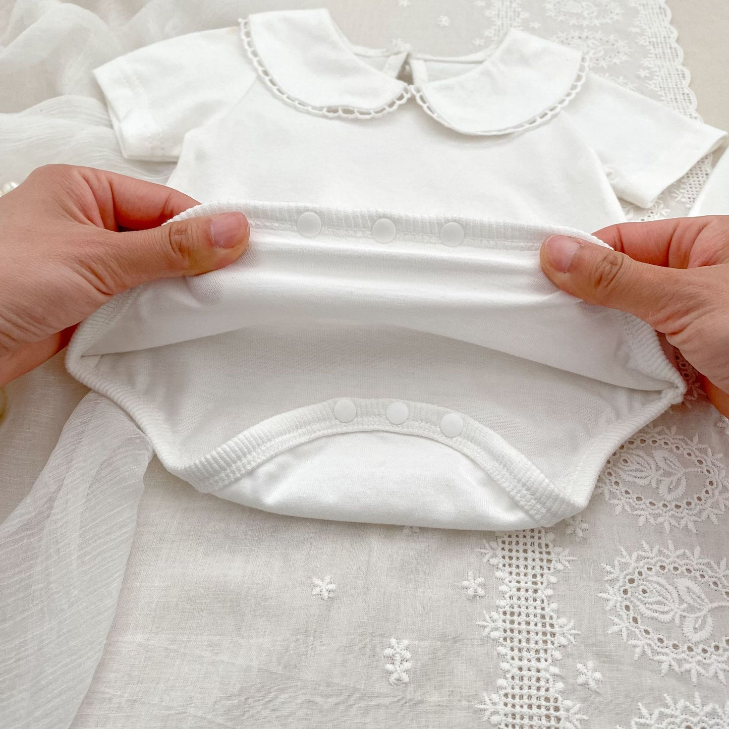 Diseñados para brindar comodidad y estilo, estos bodys blancos lisos son perfectos para el guardarropa de verano de tu bebé. Confeccionados en tela suave y transpirable, mantienen a tu pequeña fresca y cómoda en los días cálidos. Su diseño atemporal ofrece múltiples opciones de capas, lo que los convierte en una prenda esencial para el día a día con un toque refinado.