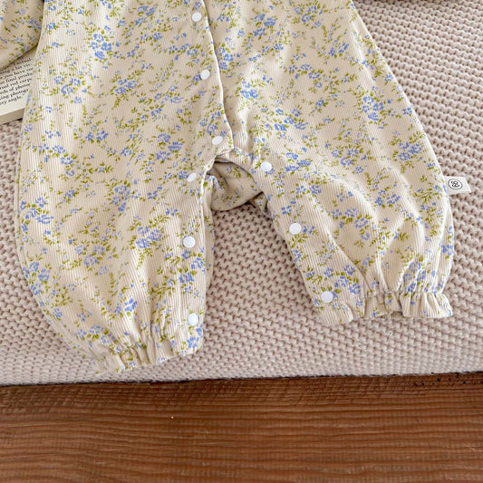 Winter Arrival Baby Girls Flowers Pattern Warm Padded Thick Romper