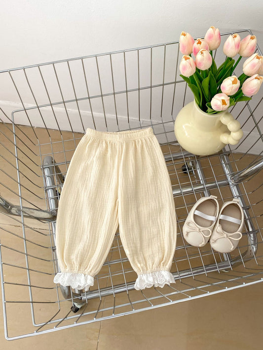 Recién llegado, pantalones de verano para bebés y niñas, transpirables, sencillos y económicos, con ribete de encaje