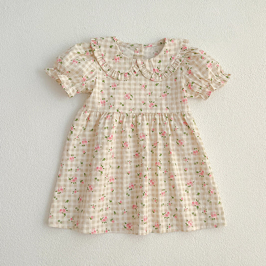 Conjunto de verano para niñas y bebés con estampado floral a cuadros y vestido para niñas: conjunto a juego de princesa y hermana