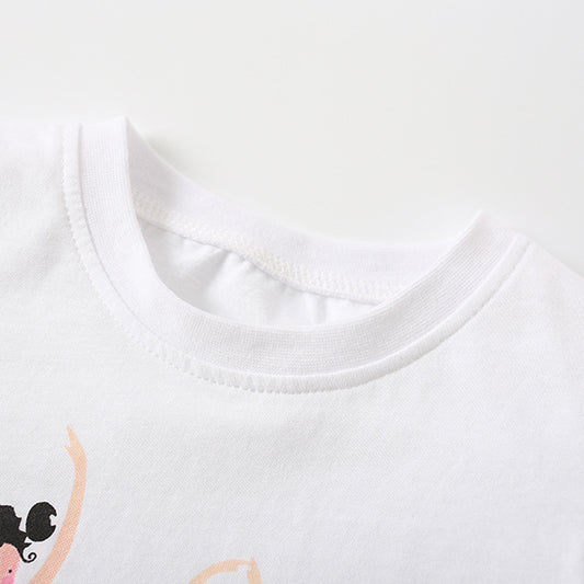 Conjunto de camiseta y pantalones cortos con colección de dibujos animados de bailarinas para niñas