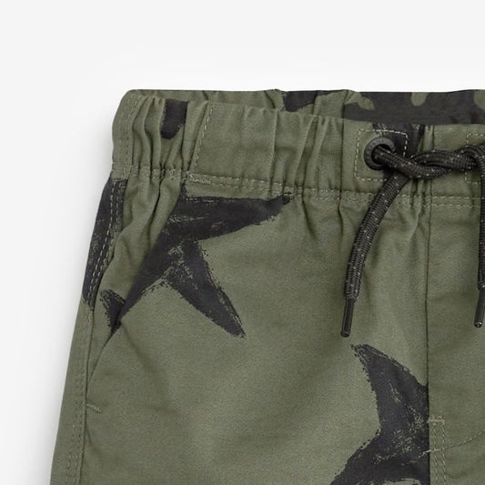 Pantalones cortos capri con estampado de estrellas suaves e informales de color verde militar para niños