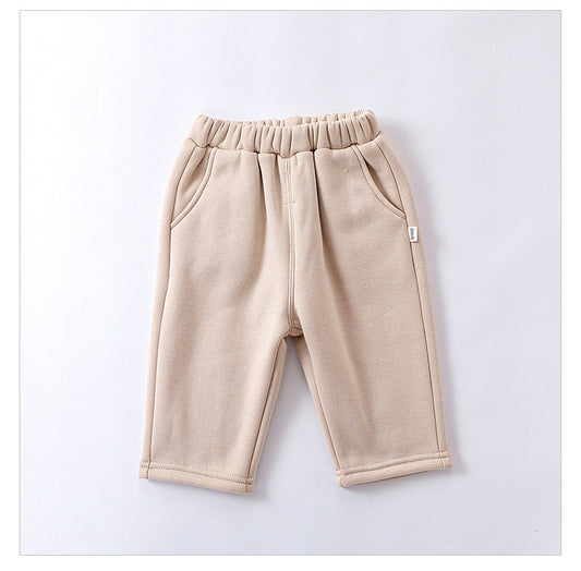 Pantalones de invierno gruesos de vellón de color liso para bebé niño y niña