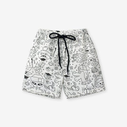 Pantalones cortos casuales con estampado de garabatos elegantes para niños
