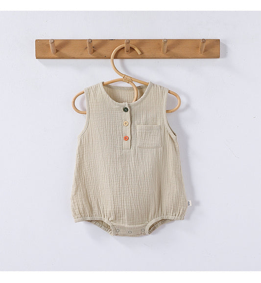 Mono de cuello redondo sin mangas con diseño abotonado y color sólido para bebé niño