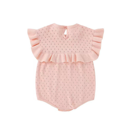 Summer Arrival Baby Unisex Cute Knitted Hollow-out Pattern Fly Sleeves Onesies