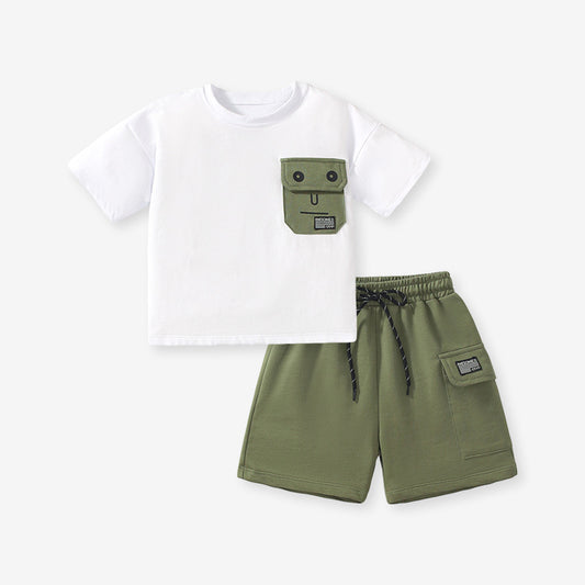 Baby Boy Cartoon Dinosaur Print Pattern Sudadera con capucha Combo Pantalones Algodón 1 piezas Conjuntos