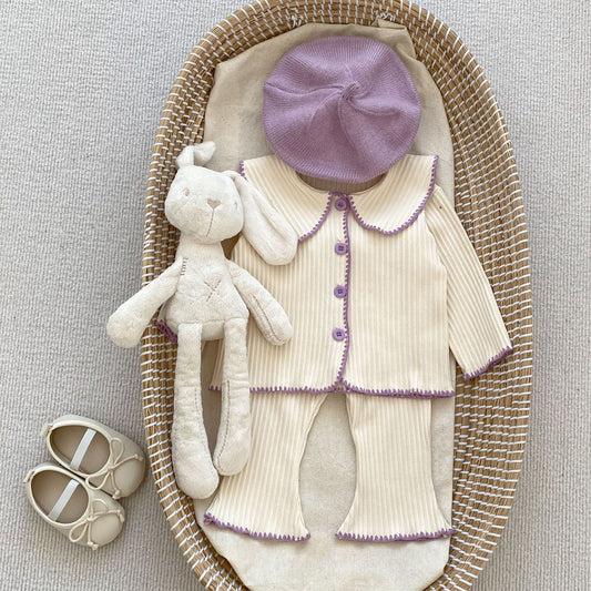 Conjuntos de cárdigan informal con dibujos animados de color sólido unisex para bebé