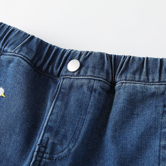 Pantalones vaqueros con estampado bordado de dibujos animados para bebés y niñas de otoño