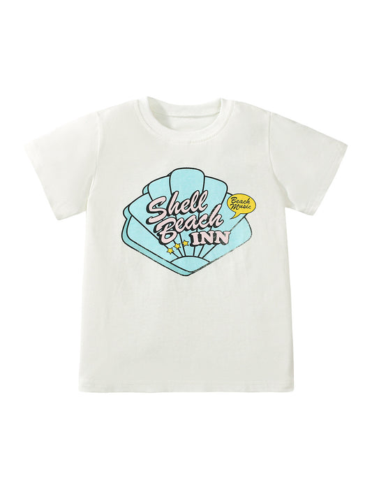 Camiseta con estampado de conchas para niñas en estilo europeo y americano para el verano
