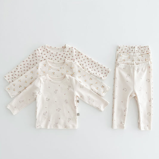 Conjunto de ropa informal para el hogar unisex con top y pantalones de dibujos animados de animales albaricoque para bebés y niños