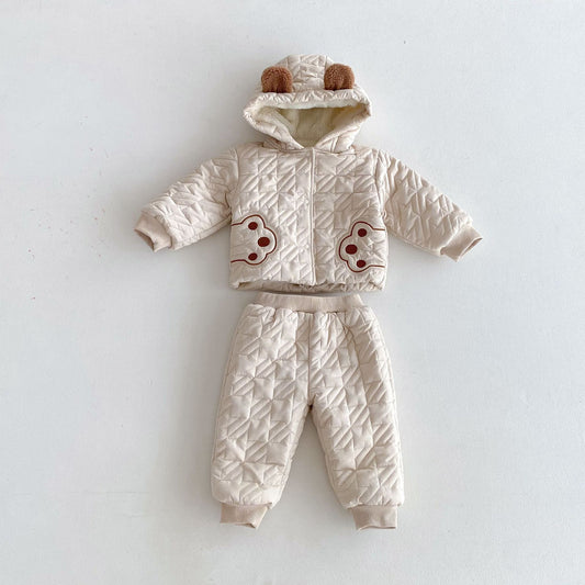 Conjuntos lindos de abrigo de manga larga con pantalones gruesos y estampado de patas de osito de peluche unisex para bebé de invierno