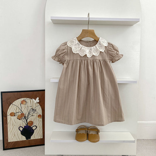 Vestido de verano de manga corta con estampado de rayas y abejas para niñas