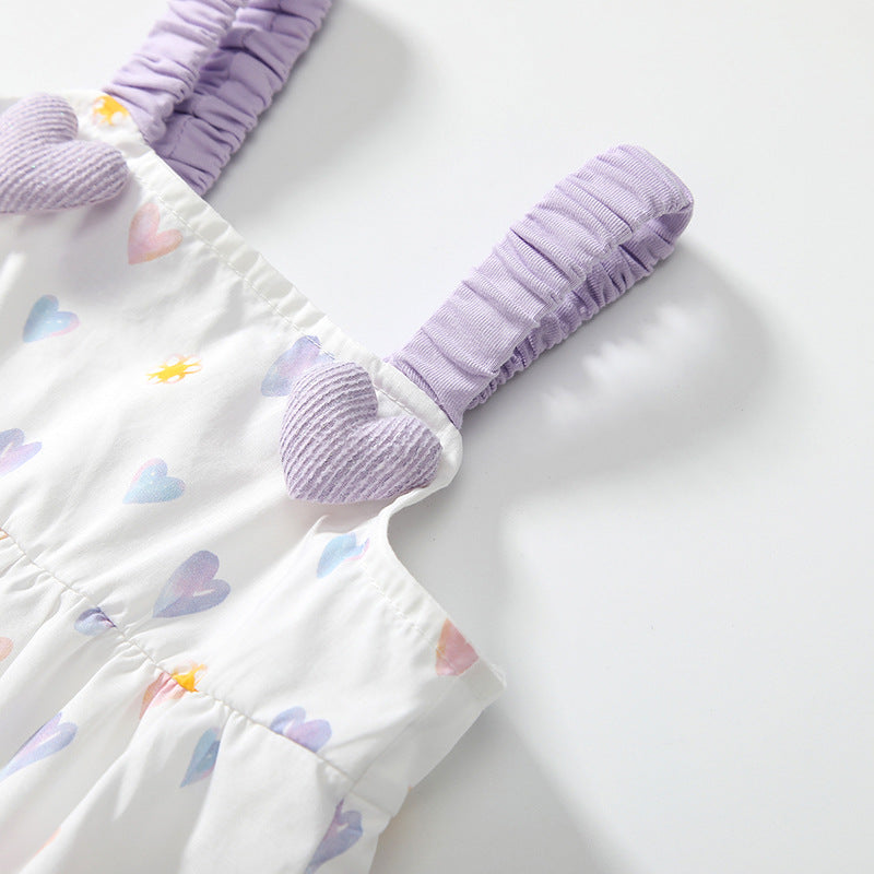 • ❤️ Encantador patrón de corazones por todas partes Un motivo de corazón dulce y divertido agrega un toque de amor y fantasía, lo que hace que este conjunto sea perfecto para niñas con un alegre estilo veraniego.