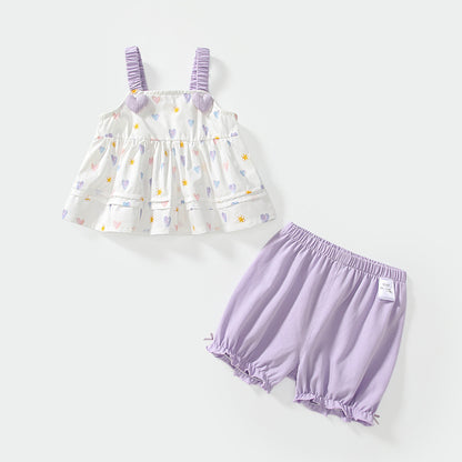 Conjunto de camiseta sin mangas y pantalones cortos con estampado de corazones para niñas de verano