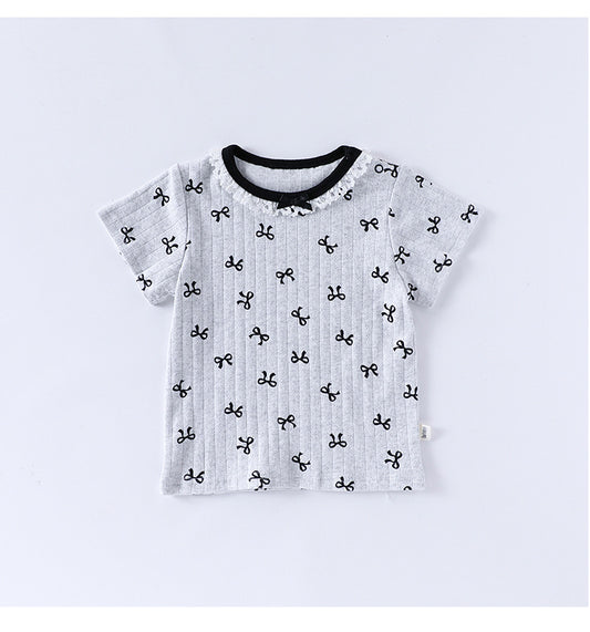 Camiseta de verano para niña con estampado de osito de peluche de dibujos animados en estilo europeo y americano