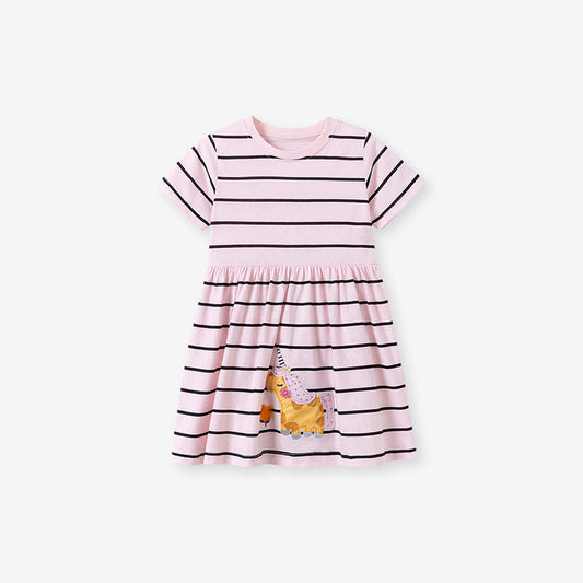 Vestido de verano a rayas para niñas, vestido con estampado de dibujos animados de animales lindos europeos y americanos