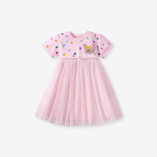Vestido de tul con estampado de lunares y mangas cortas para niñas con estilo, ideal para el verano.
