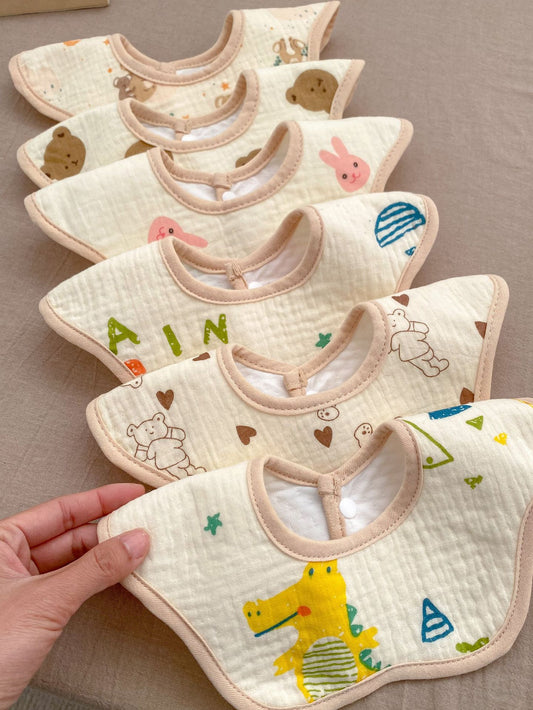 Babero de muselina de algodón con forma de U y adorable dibujo animado