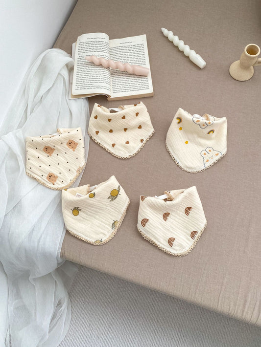 Babero triangular con cierre a presión de muselina de algodón con adorables dibujos animados