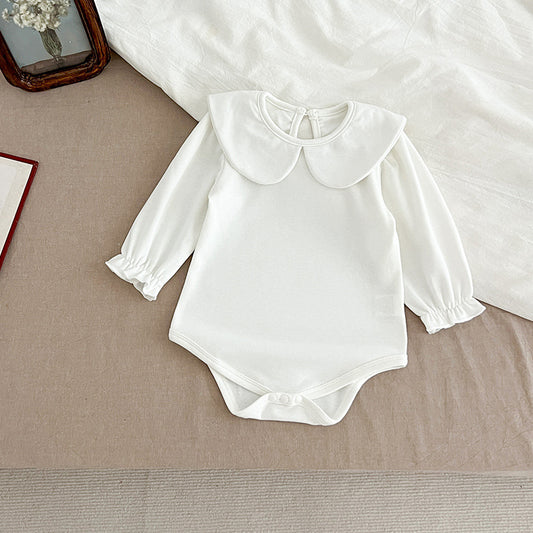 Monos blancos de cuello Peter Pan de color liso de manga larga para niñas recién llegadas de otoño