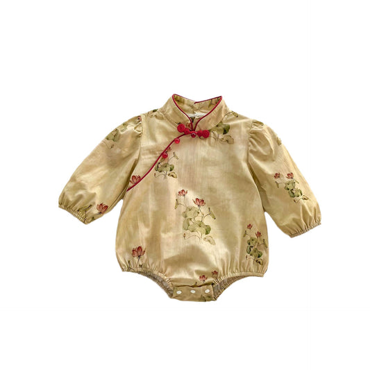 Monos de cuello alto con estampado de flores y mangas largas para niñas recién llegadas de otoño