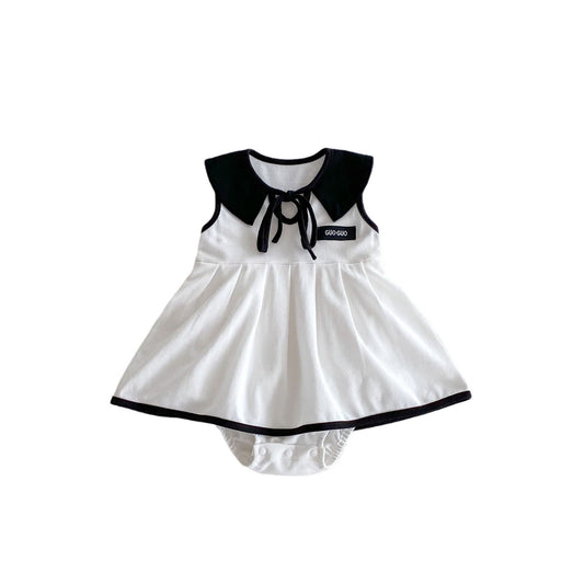 Vestido de verano con cuello estilo preppy y sin mangas con estampado de letras para niñas pequeñas