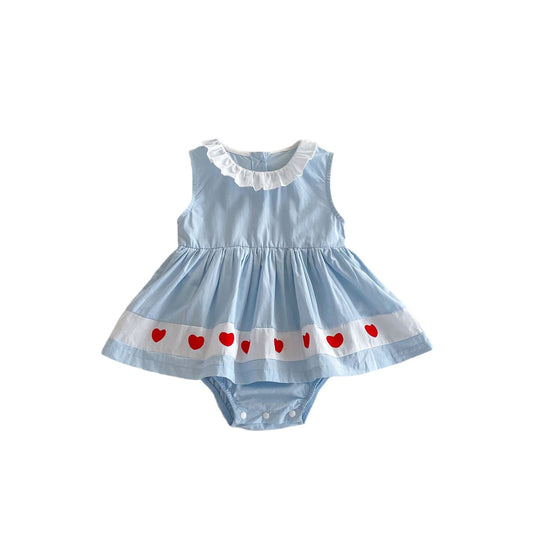Vestido mono sin mangas con cuello con volantes y estampado de corazón rojo para niñas y bebés, el más vendido de verano