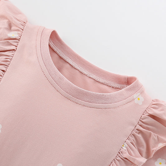 Summer Girls’ Flowers Pattern Printed Top in European and American Style