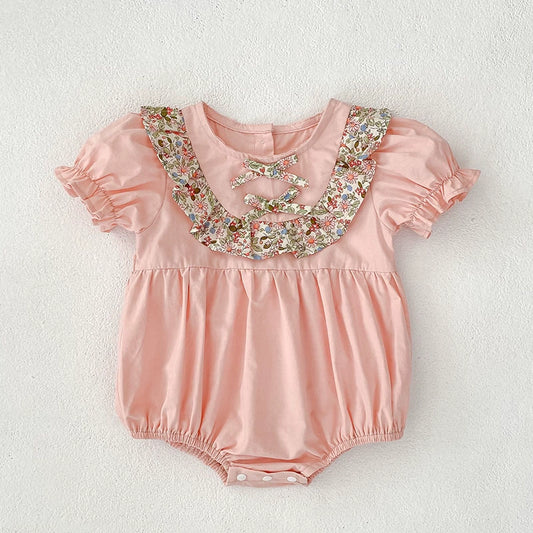 Summer Baby Girls French-style Flowers Pattern Short Sleeves Color Patchwork Onesies and Dress – Princess Sister Matching Set
