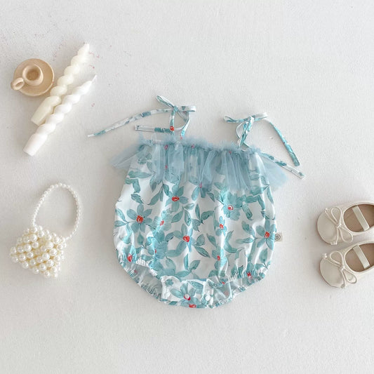 Body de tul decorado con estampado de flores de color liso de manga larga para niñas recién nacidas en otoño