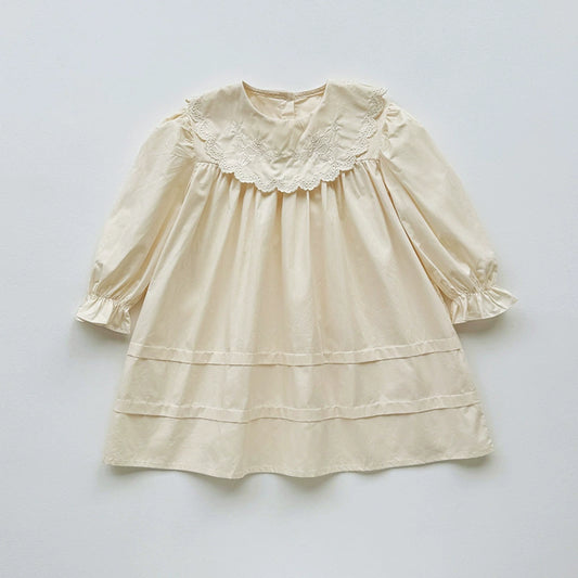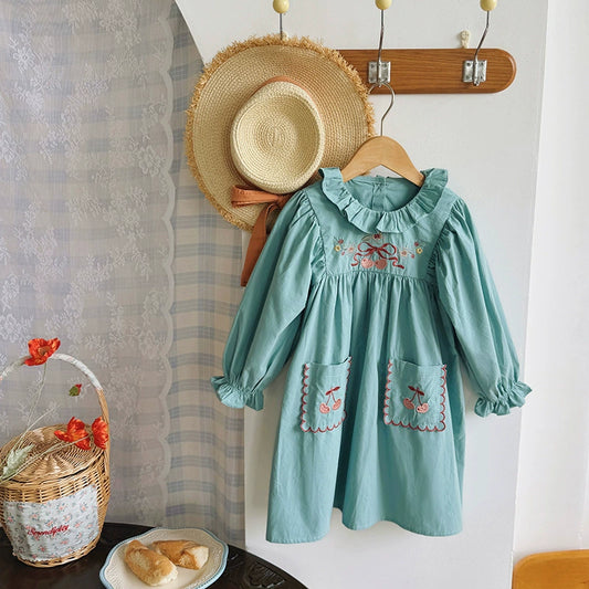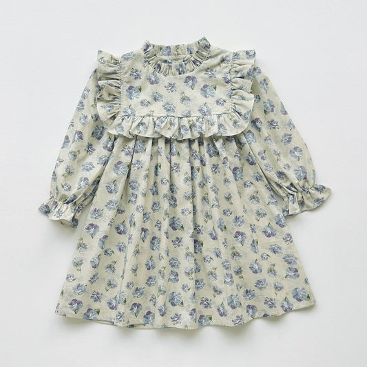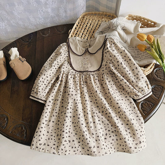 Vestido vintage con estampado de flores y mangas largas para niñas pequeñas, otoño y primavera
