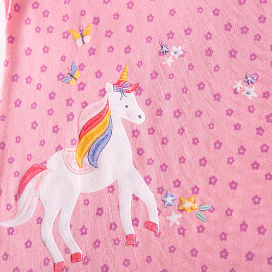 Vestido de verano de manga corta con estampado de princesa y hada para niñas con estilo.