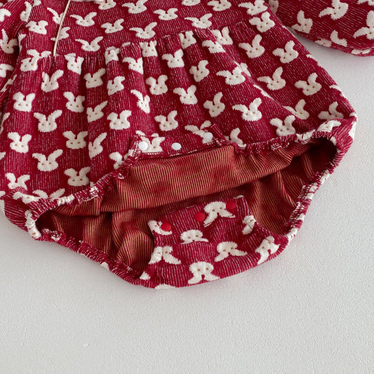 Monos de manga larga con estampado de conejos en jacquard para niñas recién nacidas de otoño