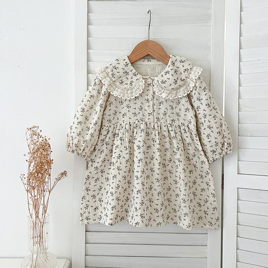 Mono y vestido con cuello bordado y flores de margaritas y manga larga con diseño de lazos otoñales