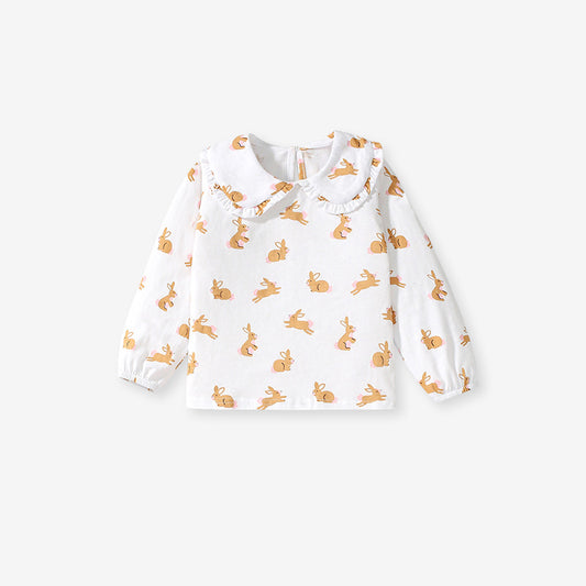 Conjunto de camiseta y pantalón de manga larga con estampado de conejos para niñas, informal, primavera y otoño