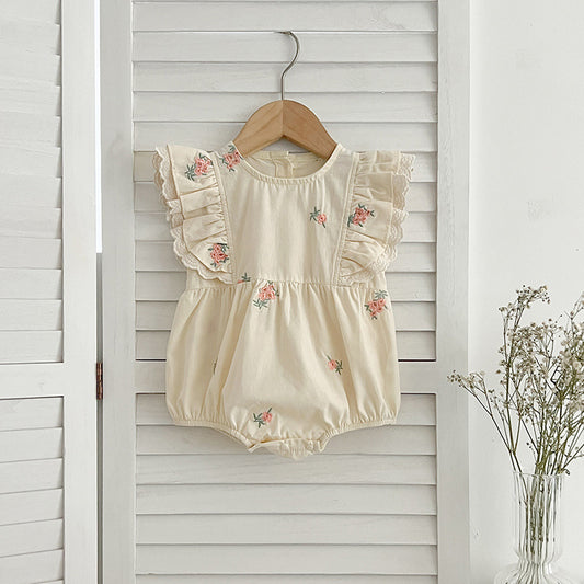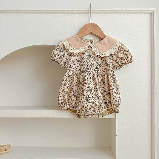 Conjunto de ropa/mono de verano para bebés y niñas con estampado floral cómodo y mangas cortas y pantalones cortos