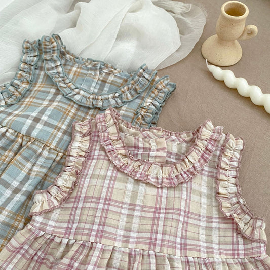 Conjunto de ropa informal de verano para bebés y niñas con chaleco sin mangas y pantalones cortos a cuadros